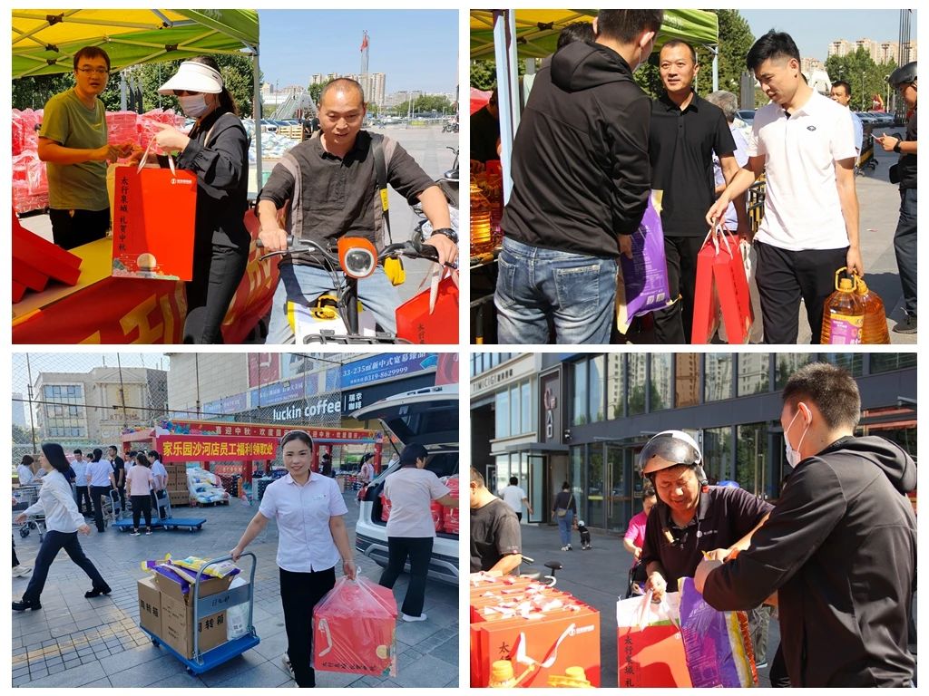 在各個(gè)員工福利領(lǐng)取現(xiàn)場(chǎng),載滿祝福的中秋福利陸續(xù)被發(fā)放到員工手中,員工和員工家屬們拎著大大小小的福利,臉上流露出了幸福的笑容。