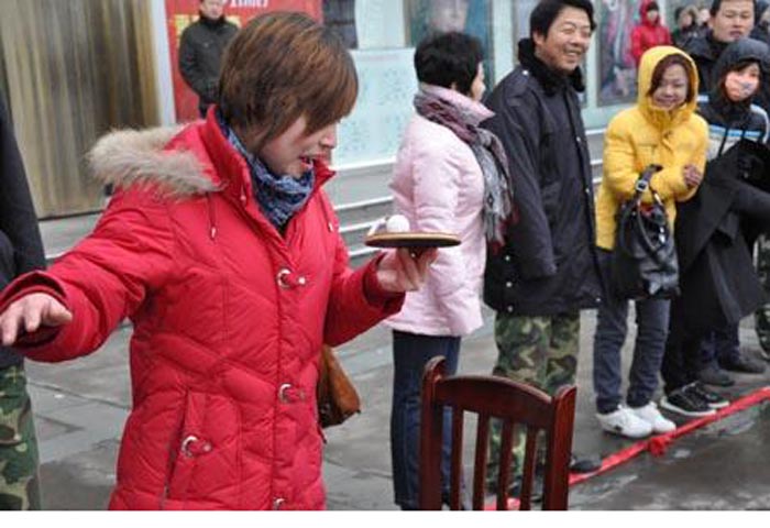 2010年3月8日在婦女節到來之際,大洋百貨在前廣場組織了一場別開生面的乒乓球比賽。此次比賽由10個小組,每組由10名女性成員組成。 初入陽春3月,似乎寒冷的雪天依然不想離開。雖然天氣有些寒冷,甚至使我們的員工姐妹有些“畏懼”,但她們還是鼓足勇氣,充滿自信的端起乒乓球拍勇往直前開始接力。 有些員工,小臉被凍得臉色發紅;但是一名員工還高興的告訴記者“雖然天氣很冷,可是我們很開心。這樣的比賽活動增強了我們的團隊協作力,也豐富了我們的生活!”