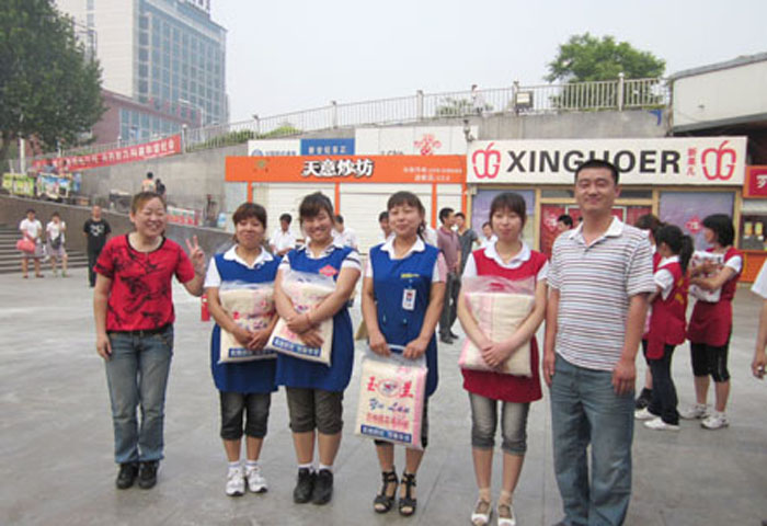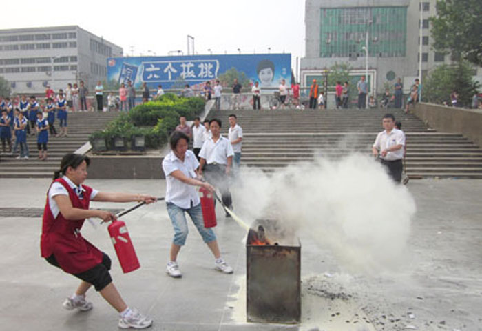 為了帶動員工的積極性,提高全員的消防意識, 2010年6月13日早,超市公司新世紀店組織了一次特別的比賽——消防安全競賽。首先由消防負責人講解滅火器的保存方法以及使用方法,講解過程中,員工聽講認真,并積極對消防安全提出問題。在講解完畢后,以課為單位分成若干小組,進行提滅火器接力跑比賽,并評出一二三等獎,由店長為獲獎團隊頒發了獎品。此次活動使員工在放松心情的同時,提高了消防安全意識。