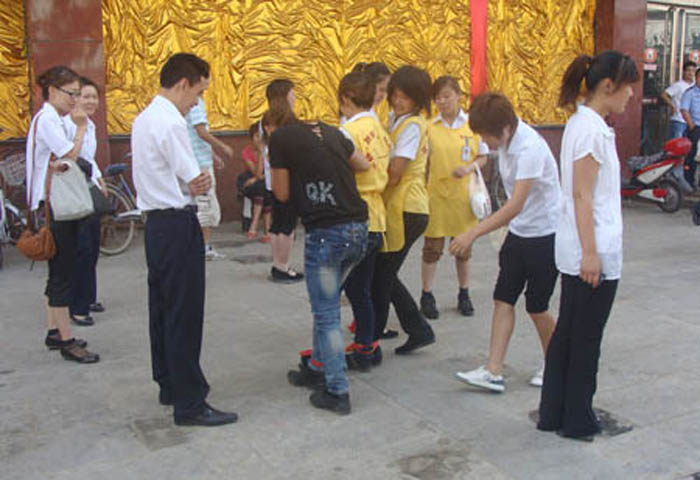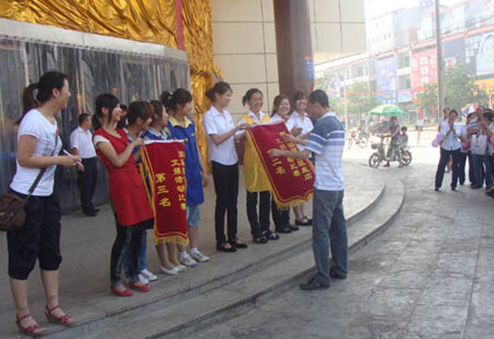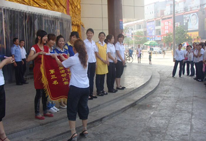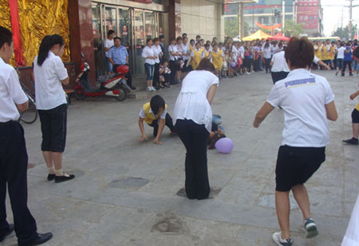 為豐富員工文娛生活, 2010年6月21日早8:00家樂(lè)園百貨巨鹿店在商場(chǎng)外廣場(chǎng)組織進(jìn)行了“大家齊步走”活動(dòng)。活動(dòng)以部門為單位,以三人為一小隊(duì)“大家齊步走”(將相鄰兩人的腿捆綁在一起)。在行走過(guò)程中,需位于中間的隊(duì)員手拿氣球,氣球不得掉落。按規(guī)則用時(shí)最短者為獲勝隊(duì)。活動(dòng)過(guò)程中,由于步幅大小不一,有員工不慎摔倒,但在部門員工的幫助下,迅速地站起來(lái),喊著口號(hào),互相協(xié)作,大步向前。此次活動(dòng)在輕松愉悅的氛圍中增強(qiáng)了員工的集體榮譽(yù)感及團(tuán)隊(duì)凝聚力,從而使員工以更加飽滿的熱情投入到工作及服務(wù)中去。