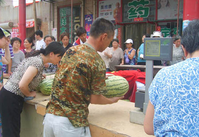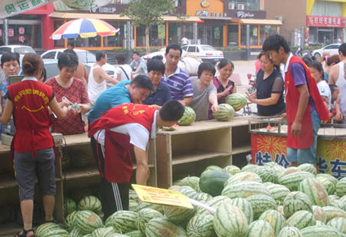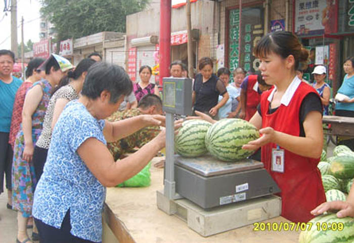 7月7日早上建設(shè)路店剛剛開始營業(yè),門外就排起了長長的長龍。這么悶熱的天氣,是什么吸引了他們,讓他們不畏酷暑?原來是建設(shè)路店正在舉辦“西瓜節(jié)”!為了在炎炎夏日為廣大顧客送上一絲清涼,同時提高建設(shè)路店的業(yè)績,建設(shè)路店舉辦了此次“西瓜節(jié)”。在配送中心的大力支持下,以超低價從西瓜種植基地采購了一車優(yōu)質(zhì)西瓜,并連夜裝車于今早送至門店。雖然酷暑難耐,但員工都以飽滿的熱情投入工作中,為門店整體的業(yè)績提升而努力。超低的價格吸引了大量顧客前來選購,不到中午6000斤的西瓜就已銷售一空。