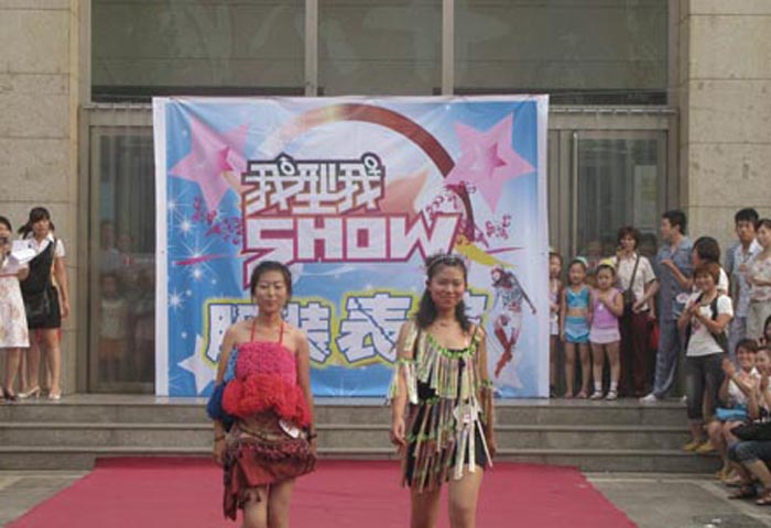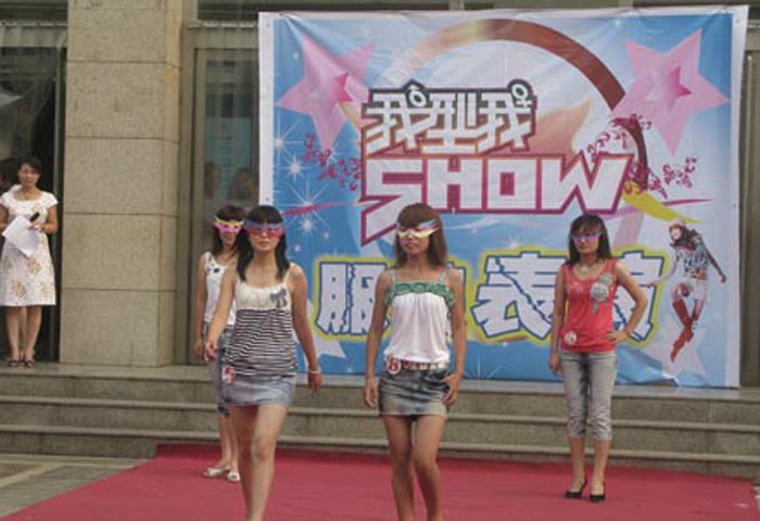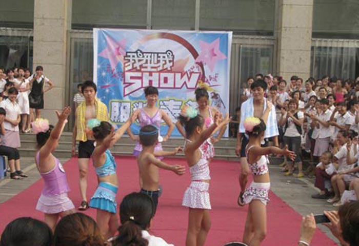 7月30日早晨,購物廣場正門前,家樂園購物廣場全體員工共同欣賞了一臺美侖美奐的時裝大戲。 這次服裝表演的主題是 “ 我型我SHOW ” 。服裝秀所展示的服裝各具特色,既有極盡華麗的正裝系列、時尚性感的夏威夷風情,也有簡約明快的職業套裝、線條流暢的休閑時裝,服飾主題鮮明,創意獨特,精彩紛呈。 服裝均為商場所經營的商品,經過員工精心巧妙地搭配,簡潔、隨意、流暢的線條淋漓盡致地展現了家樂園人的靈美。