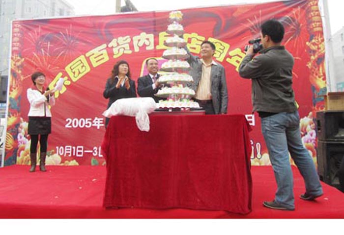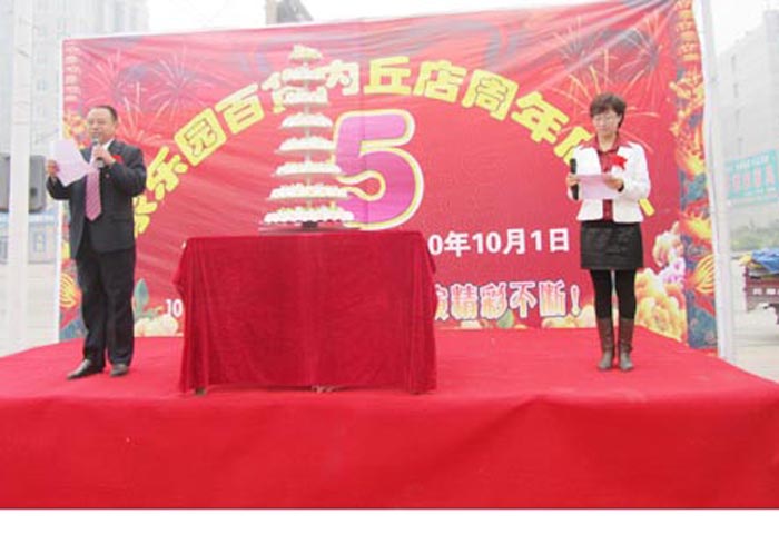 金秋十月,舉國歡慶。在這喜慶的日子,家樂園內丘百貨店也迎來了它五周歲的生日。10月1日上午,商業公司總部副總經理劉禮獻與內丘店全體員工在店前廣場隆重舉行五周年慶典。活動中,劉總將切好的一份份特殊蛋糕分發給員工和一直支持、關注內丘店發展的顧客朋友。最后員工們寫下了對家樂園最美好的寄語。