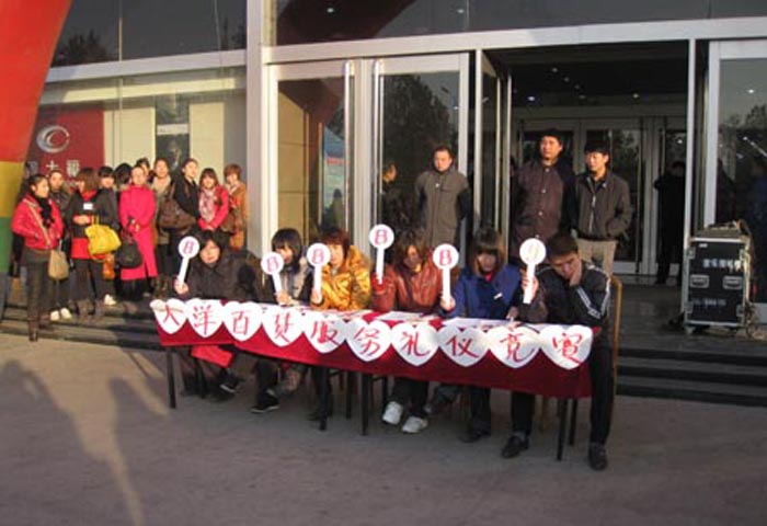 以競賽促提升,打造特色的服務。2010年11月22日—23日,顧客管理科及服務中心利用兩天時間組織員工進行服務禮儀和商品知識的競賽。大洋百貨各樓層通過服務禮儀展示、手語操表演,韻律操比賽,深化了服務禮儀的培訓,不僅提升了員工的團隊意識,更展示了大洋百貨的企業形象與風貌;在服務禮儀情景表演賽中選手們將日常銷售中各環節的服務用語、接待禮儀等內容以情景劇的形式搬上舞臺,加上現場互動方式使員工熱情高漲。通過公司服務禮儀培訓、競賽、交流等方式,有利于推動公司服務質量升級,提升員工整體服務水平。同時,通過競技,再塑家樂園人風采,再現大洋百貨特色服務。