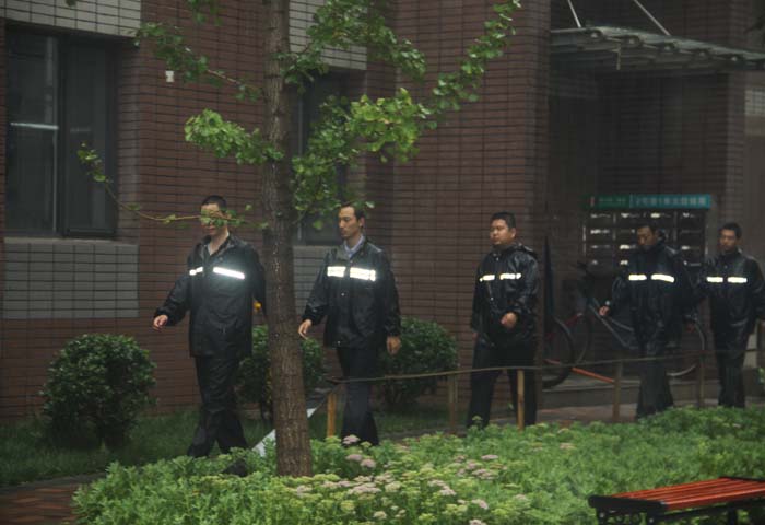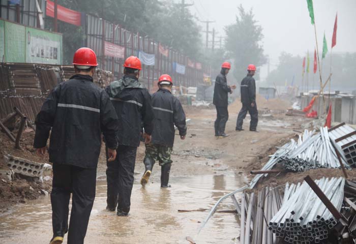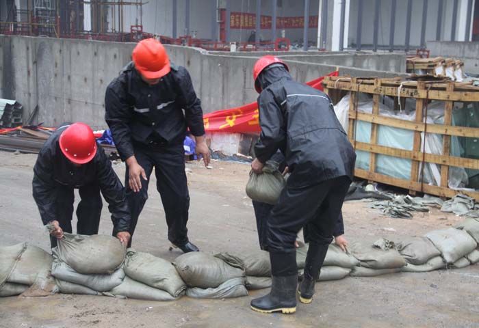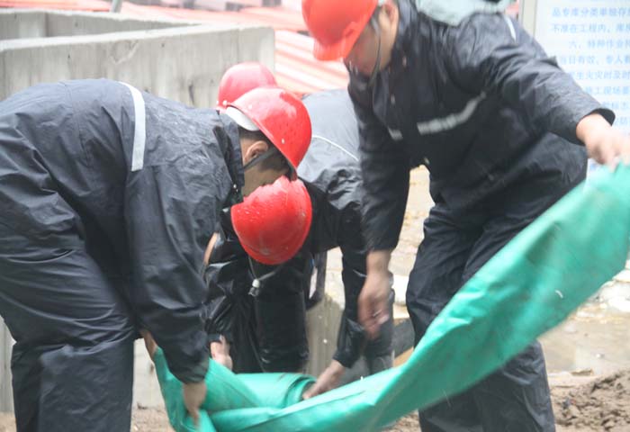 夏日暴雨,為確保天一廣場順利開業(yè),物業(yè)工作人員徹夜守候在工地現(xiàn)場,做好充分的防汛準(zhǔn)備。