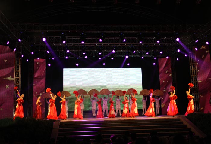 為加大集團在寧晉的認知度,值此家樂園成立12周年到來之際,7月14日晚20:00在寧晉縣民樂園廣場舉辦大型消夏晚會。整個節目現場臺上激情四射、臺下互動歡呼。