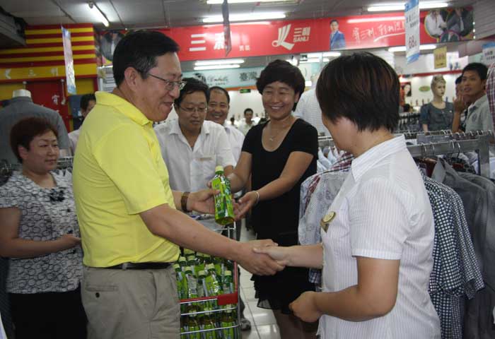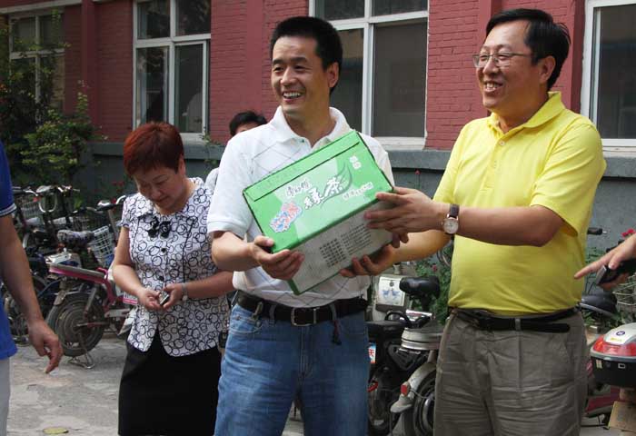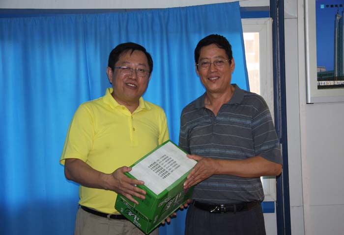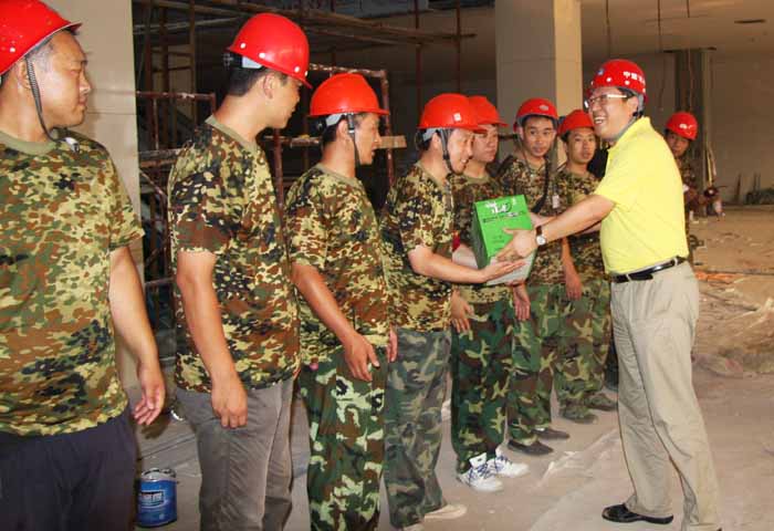 陳總、魏總、周總代表集團領導對炎炎夏日奮斗在工程一線的員工送去清涼綠茶進行慰問。