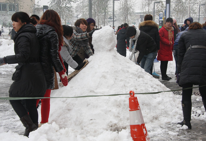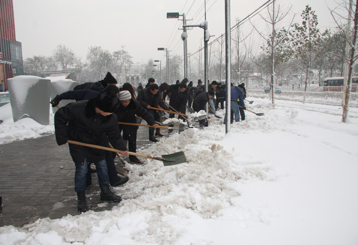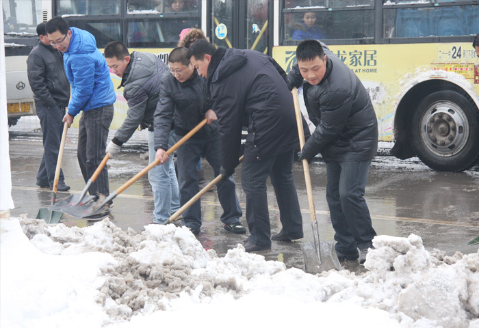 2011年11月29日,邢臺迎來了今冬首場降雪,市區積雪40厘米,達到暴雪級別,大片雪花漫天飛舞從天而降,整個邢臺市區籠罩在一片白茫茫的雪景之中,銀裝素裹,煞是好看。當然,這也給大家的出行帶來了一定的困擾。 為了防止積雪冰凍,保持天一廣場內外道路暢通,為前來天一廣場購物的顧客及行人提供安全、便捷的環境。11月30日上午8時,邢臺天一廣場商業管理公司組織人員清理天一廣場內外主要道路積雪。在公司領導的帶領下,員工們奮力地揮動鐵鍬、掃帚及各種能鏟雪的工具,鏟的鏟、掃的掃、推的推……員工們熱火朝天的勞動場面,不禁讓人想到“人心齊 泰山移”這句話。經過了短短的一個多小時,在大家的共同努力下,天一廣場前的馬路、內街、及商戶門前的積雪都已清掃干凈,保障了大家出行的安全及便捷。在這次集體鏟雪活動中,體現了家樂園人的團結、真誠,同時增添了和諧氣氛。是什么力量支撐大家,克服清晨零度以下的氣溫,踏著積雪泥濘的道路,早早來到了天一廣場前參加掃雪鏟冰呢?很簡單,是我們十幾年來一直傳承的“家文化”。是家人的團結、真誠,是家人的無私奉獻,是家人的互幫互助,讓我們為著一個共同的目標與愿景走到了今天,走向未來……