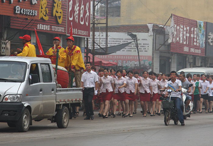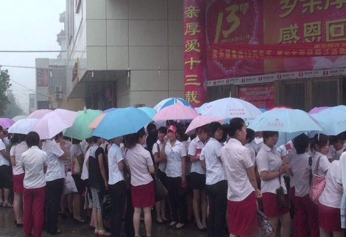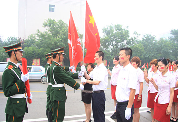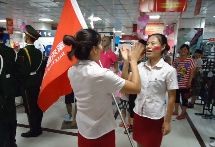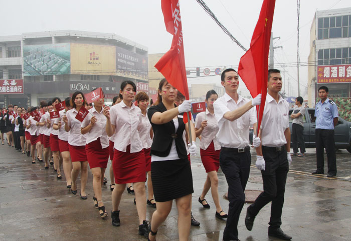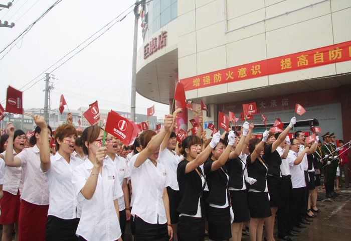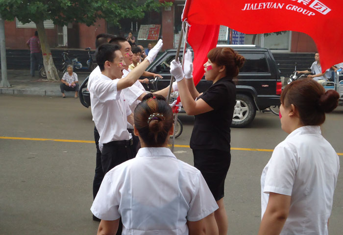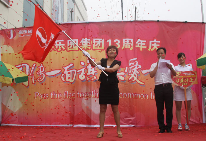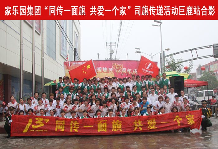鑼鼓喧天,彩旗飄揚(yáng),7月8日早8:30,經(jīng)過連日的傳遞,司旗抵達(dá)巨鹿店,通過巨鹿縣主干道,分10個站點抵達(dá)主會場——家樂園百貨巨鹿店。廣場上員工們嘹亮的《家樂園之歌》響徹云霄,大家振臂高呼 “快樂家園,百年基業(yè),家樂園,加油、加油、加油!”的口號震撼著每一個人的心靈。迎接司旗傳遞的活動現(xiàn)場熱烈隆重,承載著家樂園員工所有愿景的司旗在巨鹿店內(nèi)外傳遞。