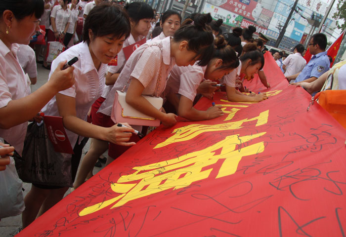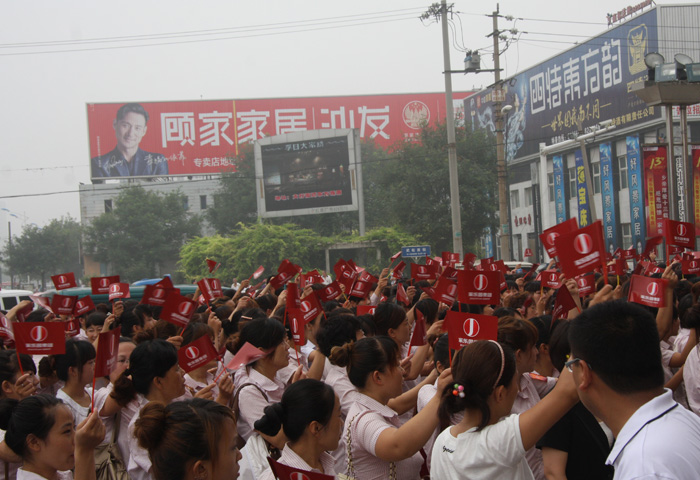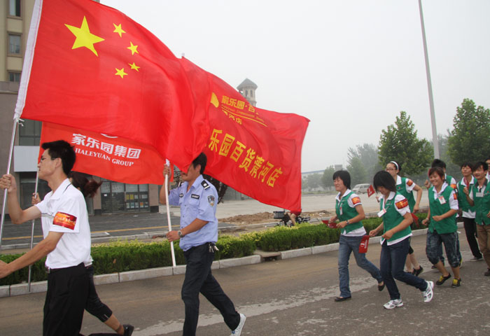 為慶祝家樂園集團13周年慶典,回饋父老鄉親的支持與厚愛,家樂園集團以“同傳一面旗,共愛一個家”為主題,舉辦了所有家樂園人共同參與的萬人司旗傳遞儀式,自集團總部出發,在經歷了新世紀店、中興店、廣場店、內丘店、寧晉天寶店、寧晉天一廣場、巨鹿店后,在7月9日終于到達了家樂園清河店。經過半個小時的傳遞,司旗在超市、百貨、家電所有家樂園人的護衛下,走過了3500米的征程,最后由門店總經理張潔親手交回集團護旗手的手中,完成了司旗在清河店的傳遞!