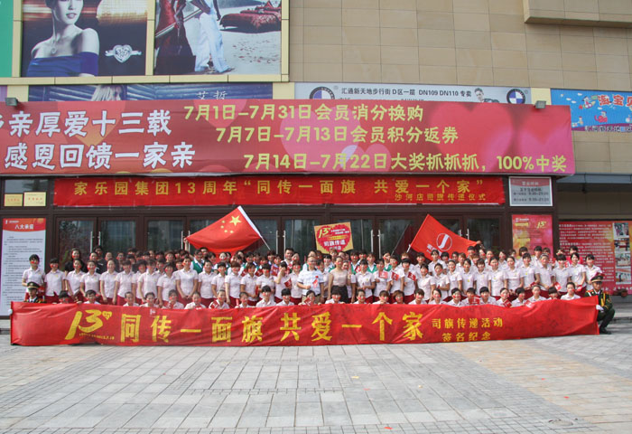 13年了!13年的風(fēng)風(fēng)雨雨,13年的并肩攜手,13年的患難與共我們一起來見證!如今的家樂園已長成一棵參天大樹,在她13周歲生日到來之際,集團舉辦司旗傳遞活動進行慶祝。經(jīng)過連日的傳遞,司旗傳遞的接力棒終于到達沙河店!