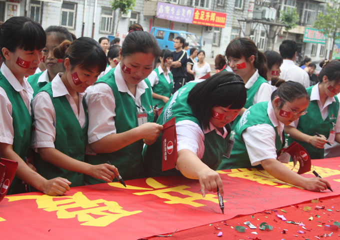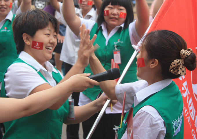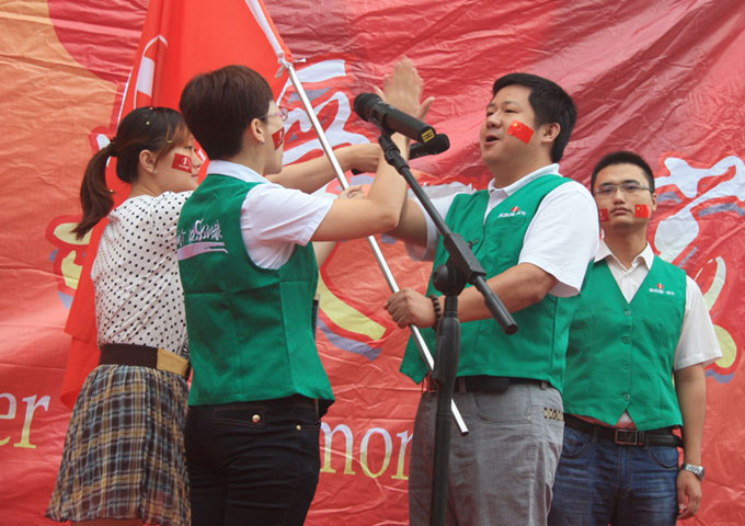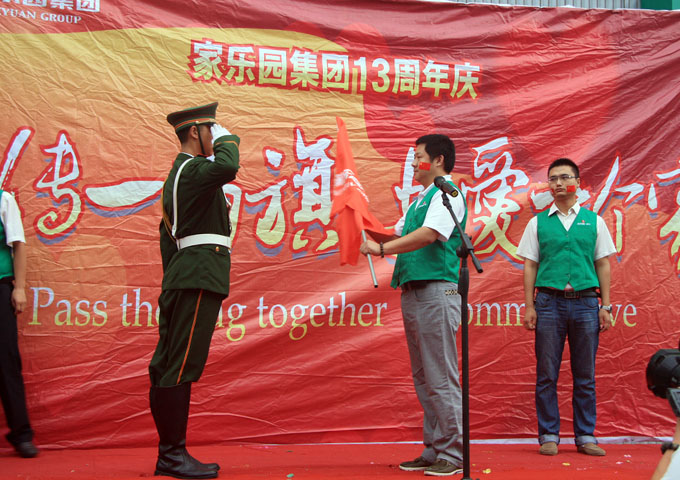 2012年7月14日,是我們傳遞旗幟、放飛夢想的日子——家樂園“同傳一面旗 共愛一個家”司旗傳遞至超市事業(yè)部建設(shè)西路店。