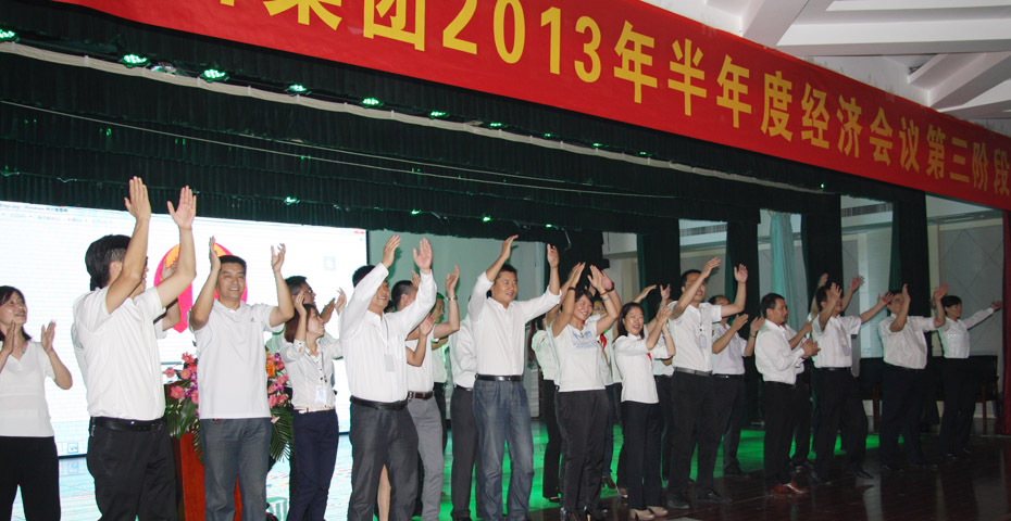 9月13日下午14:30,家樂園集團2013年半年度經(jīng)濟工作會議第三階段會議在技師學院報告廳隆重舉行。集團董事長廖禮基、副總裁刁保成、黨委書記路明宇、黨委副書記郝春玉及來自各業(yè)態(tài)、項目公司的500余名核心管理人員參加了此次會議。