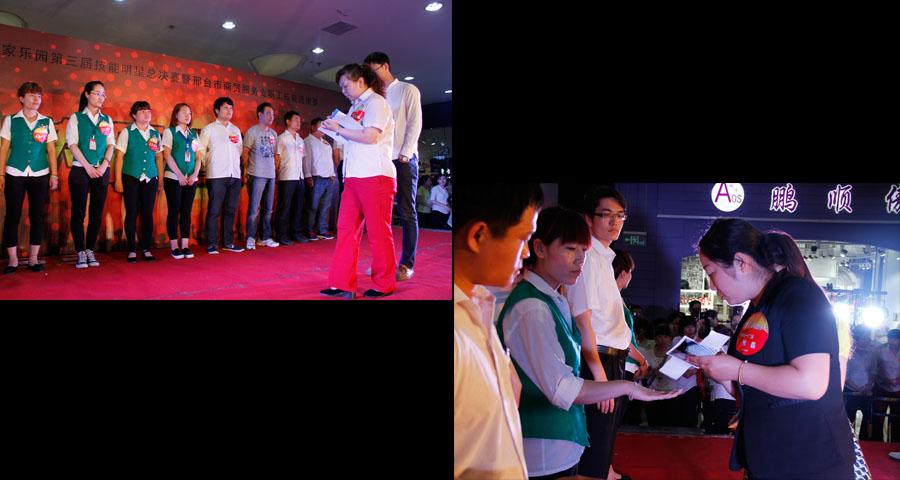 5月22日下午七點(diǎn),歷時(shí)三天的家樂(lè)園第三屆技能明星總決賽圓滿落下帷幕。經(jīng)過(guò)三天的激烈角逐,此屆決賽共產(chǎn)生15位技能明星,使集團(tuán)范圍內(nèi)的明星總數(shù)增至28名。15名技能明星中有固定項(xiàng)目技能明星9人,創(chuàng)新之星1人,挑戰(zhàn)之星5人。他們分別為:襄都店呂慧云、廣場(chǎng)店方玉芳、百貨天一店底浩、廣場(chǎng)店徐明輝、內(nèi)丘店李蘭蘭、廣場(chǎng)店李娜、新光店滑文艷、清河店邱鳳、超市天一店范建偉、內(nèi)丘店任彩玉、超市天一店李煥峰、邢臺(tái)天一廣場(chǎng)王勃、襄都店牛文霞、內(nèi)丘店李霞、巨鹿店田寶娜。這中間既有一鳴驚人的黑馬,又有守擂成功的老將,但都是各個(gè)專業(yè)項(xiàng)目的佼佼者。他們的精彩表現(xiàn)給在場(chǎng)的評(píng)委和觀眾都留下了深刻的形象。比賽結(jié)束了,但比賽現(xiàn)場(chǎng)的一個(gè)個(gè)精彩瞬間,卻在大家的腦海中定格。自2013年開(kāi)始,每年一屆的技能明星賽是家樂(lè)園各崗位員工“比、拼、秀”的大舞臺(tái)。從這個(gè)舞臺(tái)上,大家知道了原來(lái)用毛巾可以疊出那么多小動(dòng)物,原來(lái)傳說(shuō)中的一刀準(zhǔn)、一秤準(zhǔn)就在我們身邊,原來(lái)領(lǐng)帶可以打出那么多花樣,原來(lái)目測(cè)腰圍竟能百分百準(zhǔn)確……家樂(lè)園員工們的高超技能得到了評(píng)委和觀眾的見(jiàn)證,大家在難以置信的同時(shí),無(wú)不稱贊“家樂(lè)園的能人還真是多!”此屆技能明星賽雖已落幕,但是它所產(chǎn)生的明星效應(yīng)將會(huì)持續(xù)發(fā)酵,全集團(tuán)各門(mén)店將開(kāi)展學(xué)明星、爭(zhēng)明星活動(dòng),將再度掀起“為顧客練兵忙”的熱潮。此外,本屆技能明星賽還選出了代表家樂(lè)園參加市級(jí)職工大賽的種子選手。