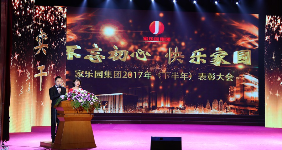 3月28日下午,在冶金俱樂部,家樂園集團召開了2017年度下半年表彰大會。主題為“不忘初心,快樂家園”,表彰會主要分為回顧卓越篇、頒獎盛典篇、節(jié)目演出篇、未來承諾篇。
